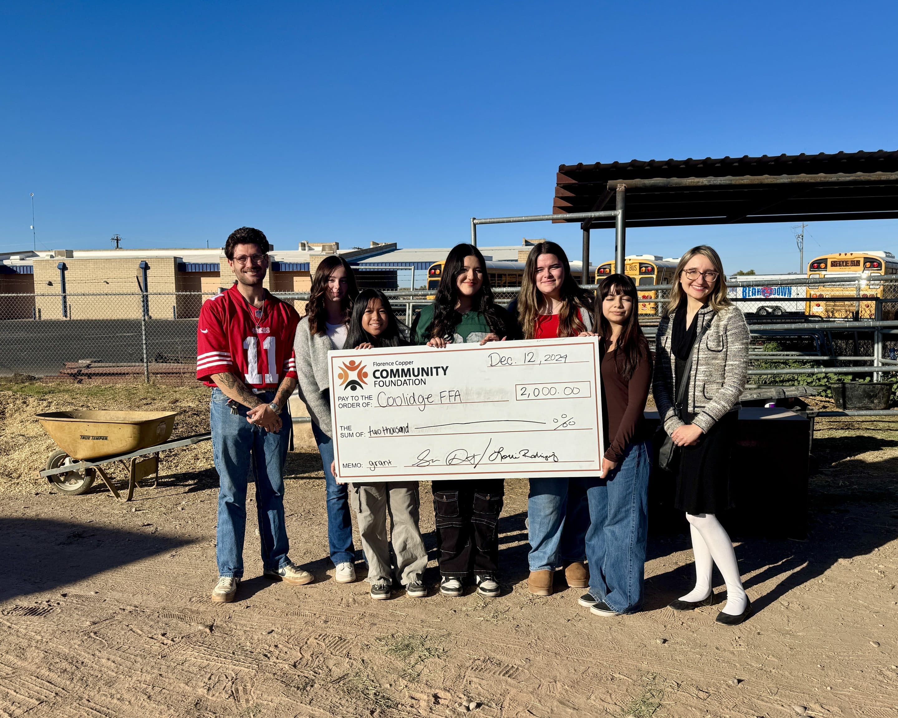 The Florence Copper Community Foundation is excited to announce the awarding of a $2,000 grant to the Coolidge FFA program, providing valuable support for the student members of the program. This contribution will help sustain and expand the educational opportunities offered to the nearly 300 members of the program at Coolidge High School.