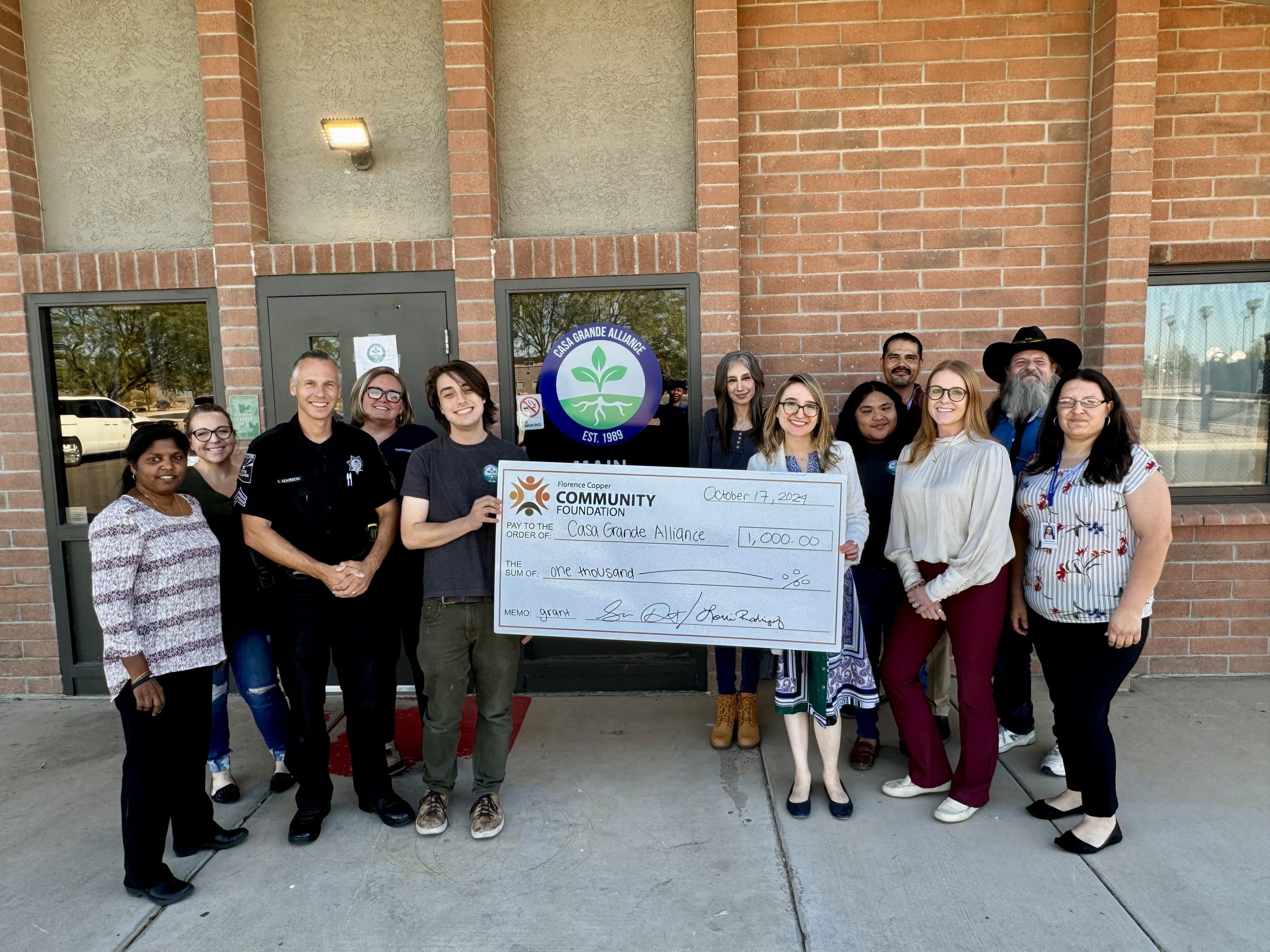 The Florence Copper Community Foundation has awarded a $1,000 grant to Casa Grande Alliance to support its vital Food, Clothing, and Diaper Bank. This program provides essential resources, including food, clothing, and diapers, to underserved individuals and families throughout the Casa Grande area. Operated by Casa Grande Alliance, the Food, Clothing, and Diaper Bank plays a critical role in offering assistance to those in need, including Title 1 students and individuals seeking professional attire as they transition back into the workforce.