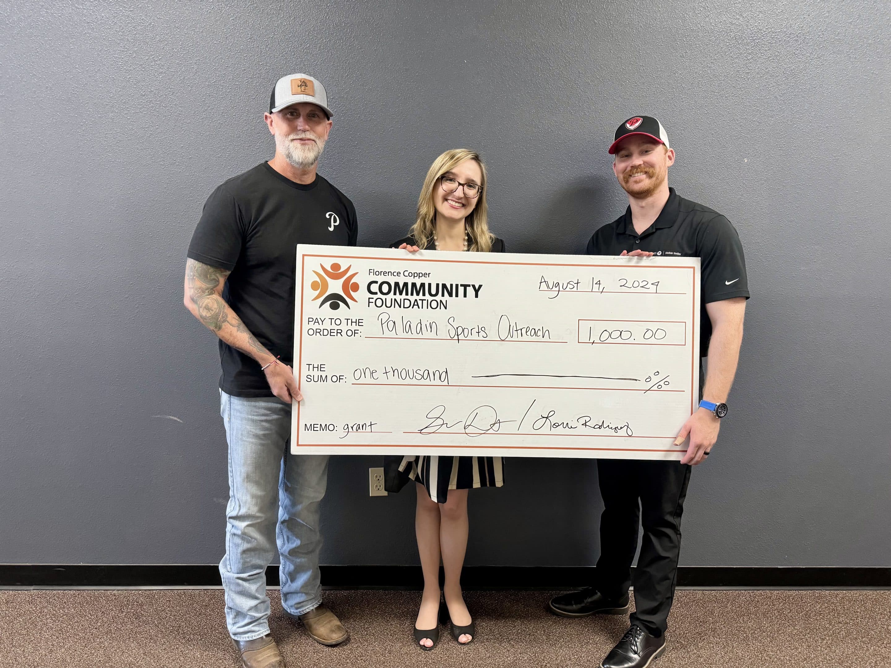 The Florence Copper Community Foundation is excited to announce a $1,000 grant to Paladin Sports, a non-profit organization dedicated to bringing sports and recreation activities to Arizona communities and promoting valuable life lessons through sports.