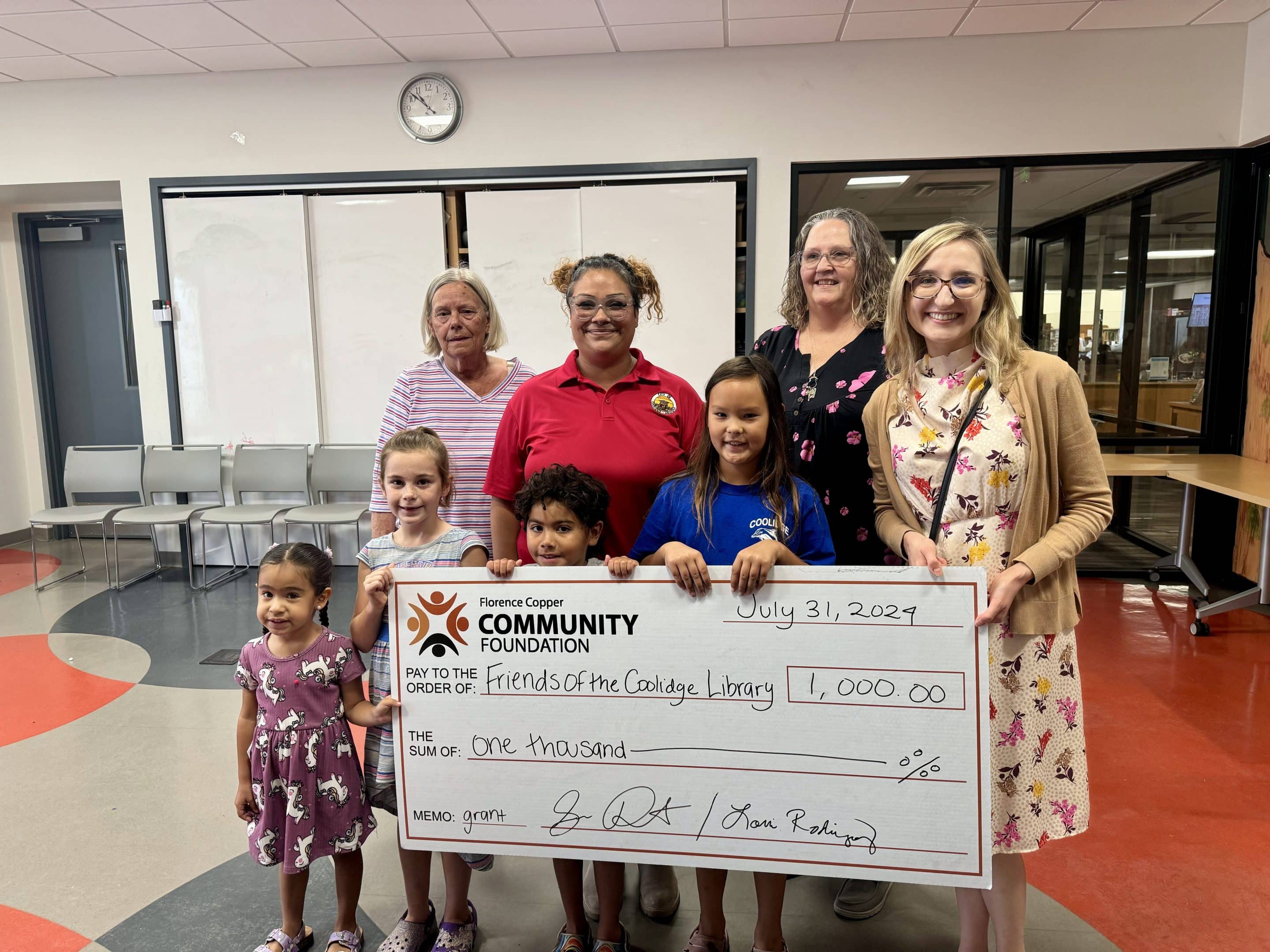 The check presentation took place at the Coolidge Public Library, where representatives from the Friends of the Coolidge Library and the Florence Copper Community Foundation were joined by local families who will benefit from this generous donation.