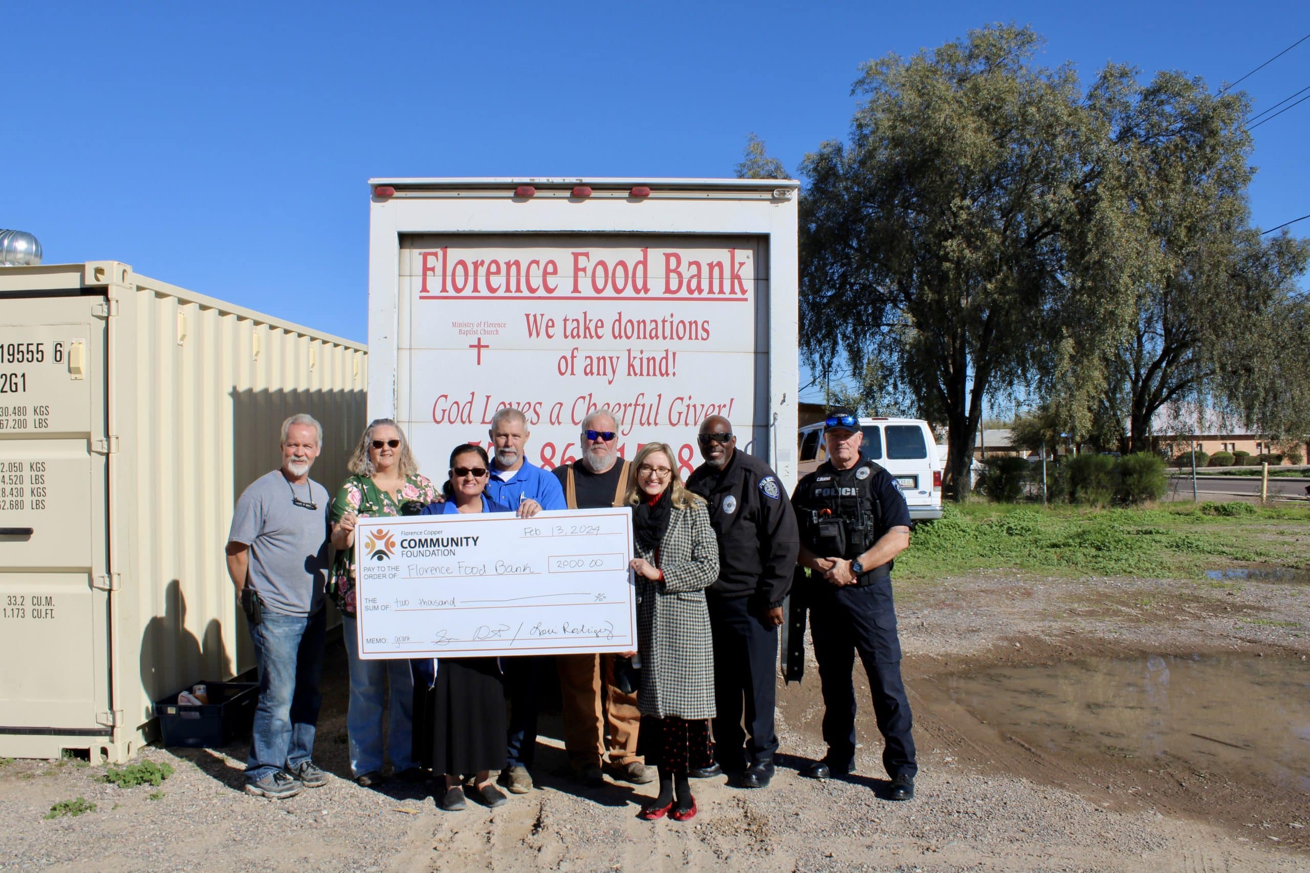 Individual grants of $2,000 were awarded to the Florence Baptist Church/Food Bank, Future Forward Foundation, Pinal County Historical Society, and Pedro E Guerrero Arts Center.